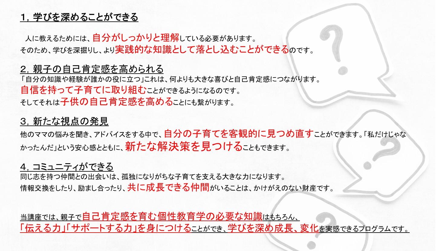 自己肯定感を上げる授業やママ向けの講座を開催し、