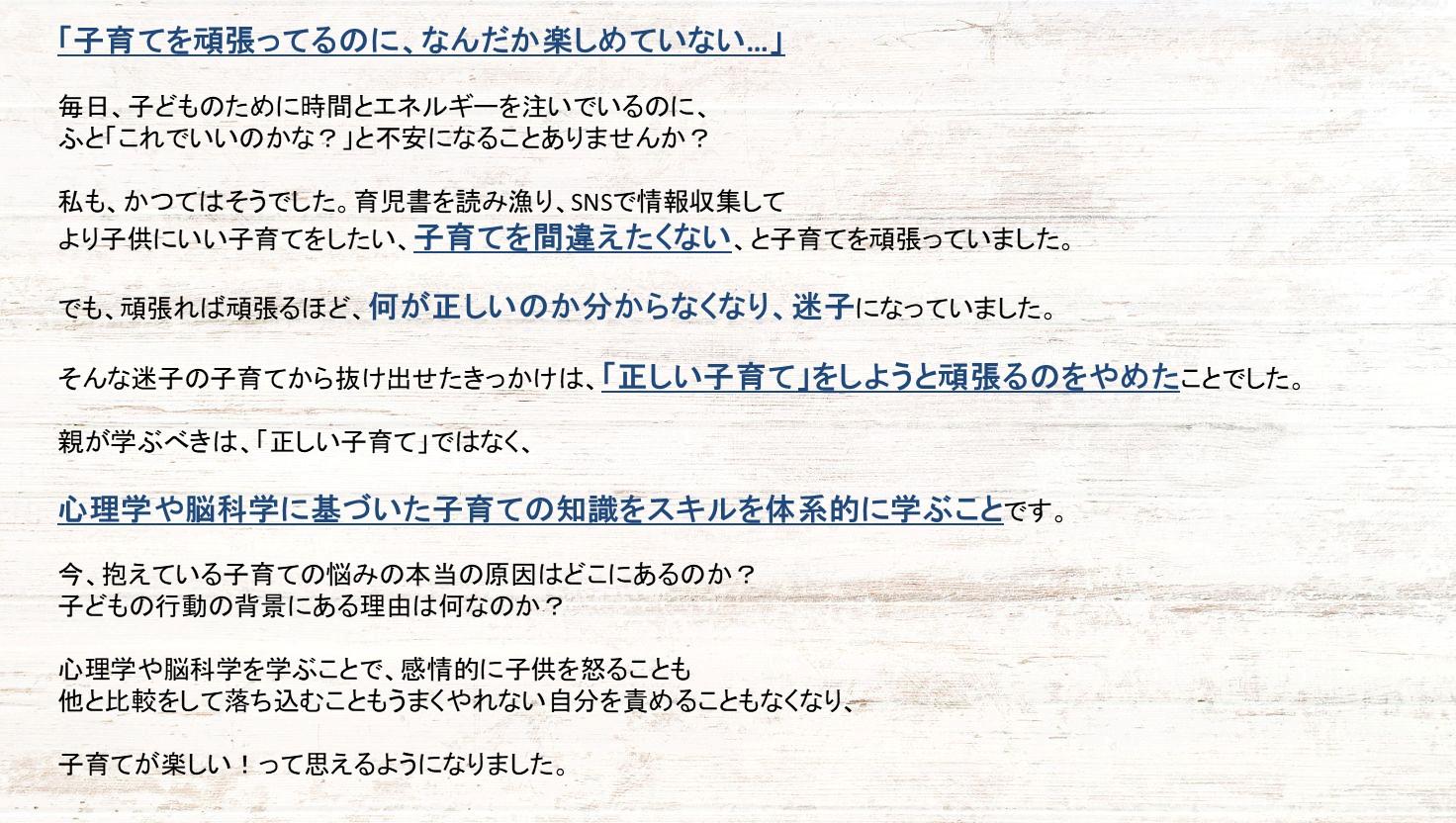 悩めるママたちに心理学や脳科学の知識やスキルを体系的に伝えサポートする